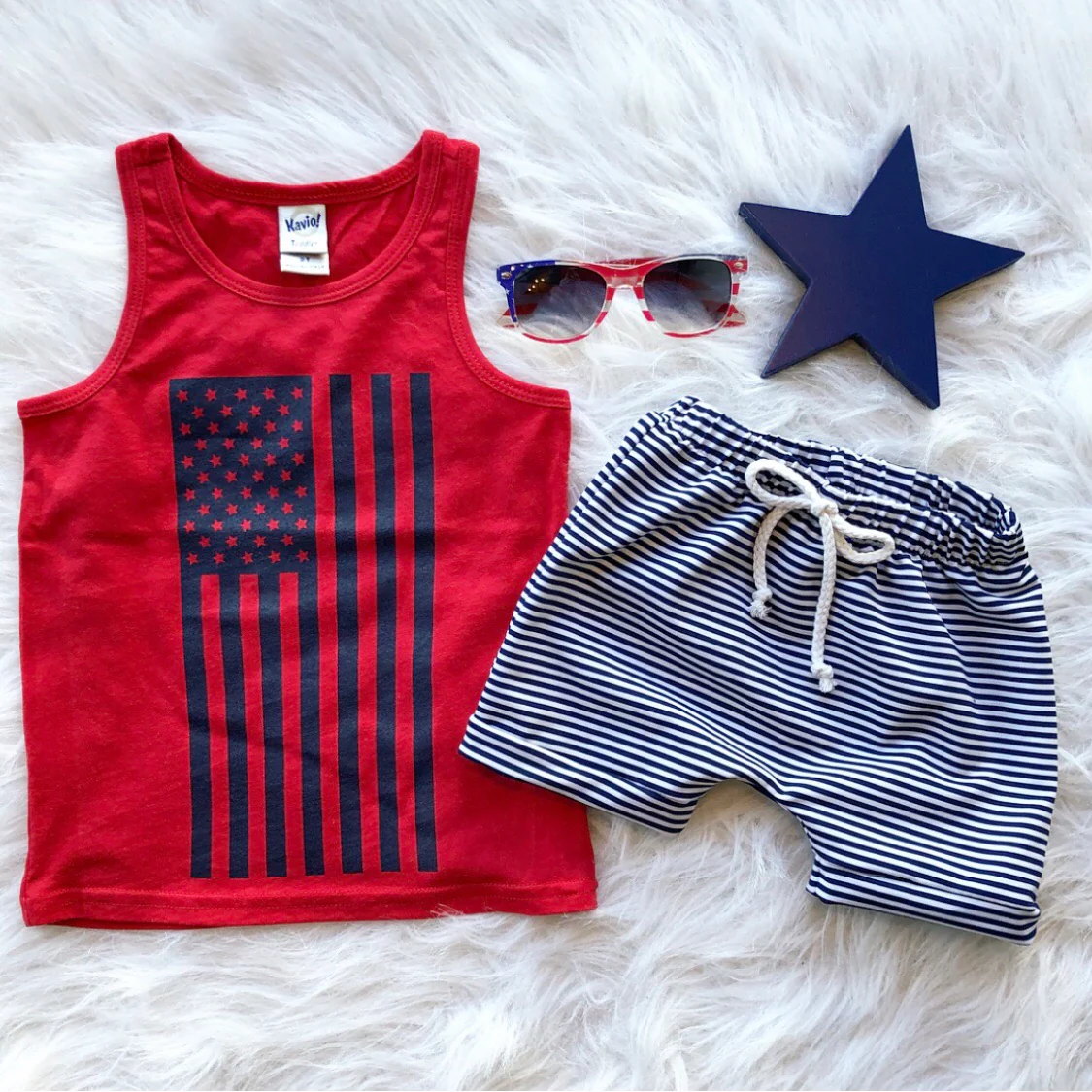 The perfect tank for your mini. Our popular flag printed in navy ink on red tanks. These shirts are super-soft and run true-to-size with a long/lean fit. Please allow up to three weeks for shipment as each of our items are individually made-to-order. Thank you for shopping small!